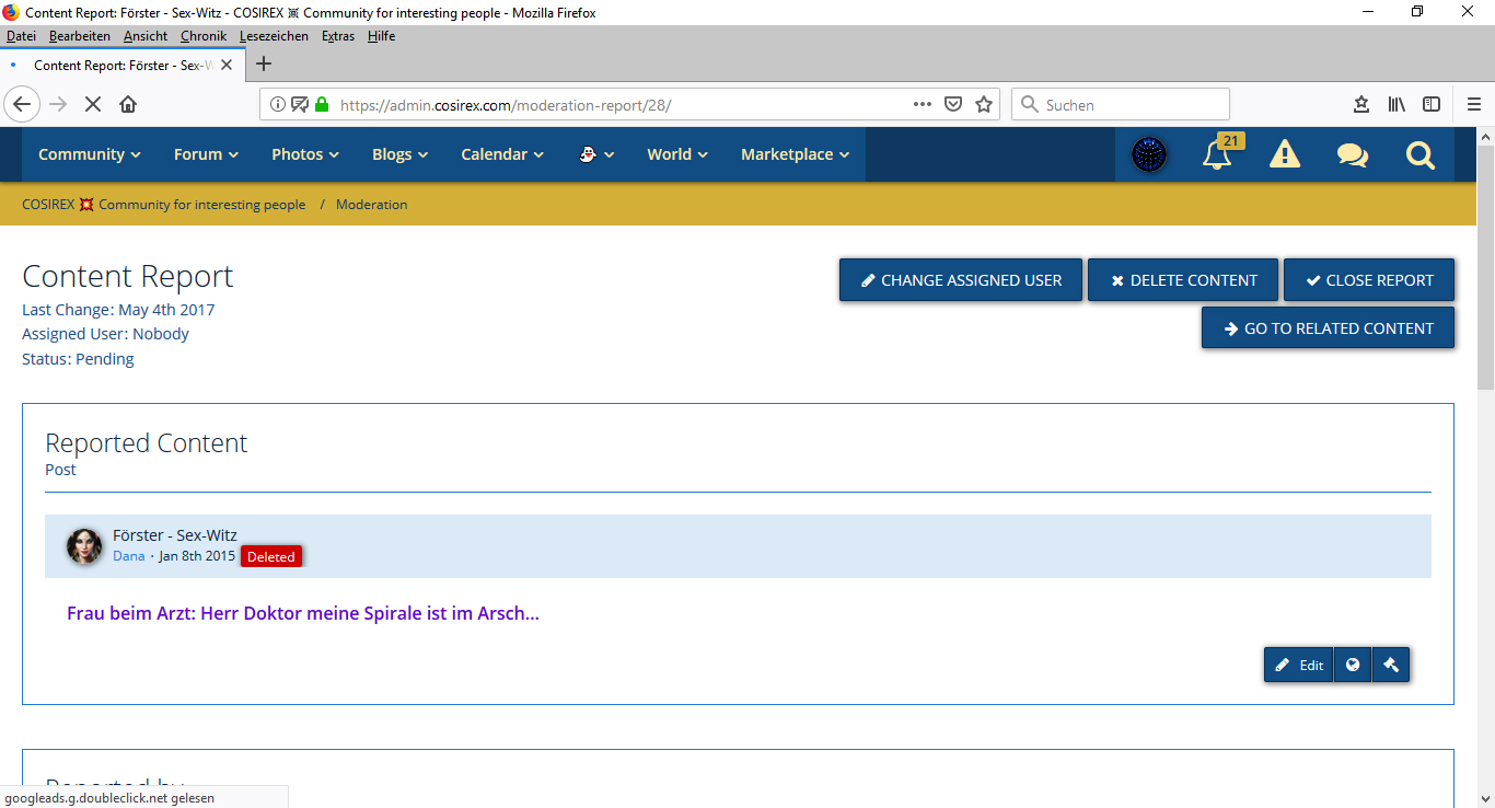 You can also use the user of the person shene, who has reported the respective content. In this case it is an anonymous guest. The user name is always "Guest".