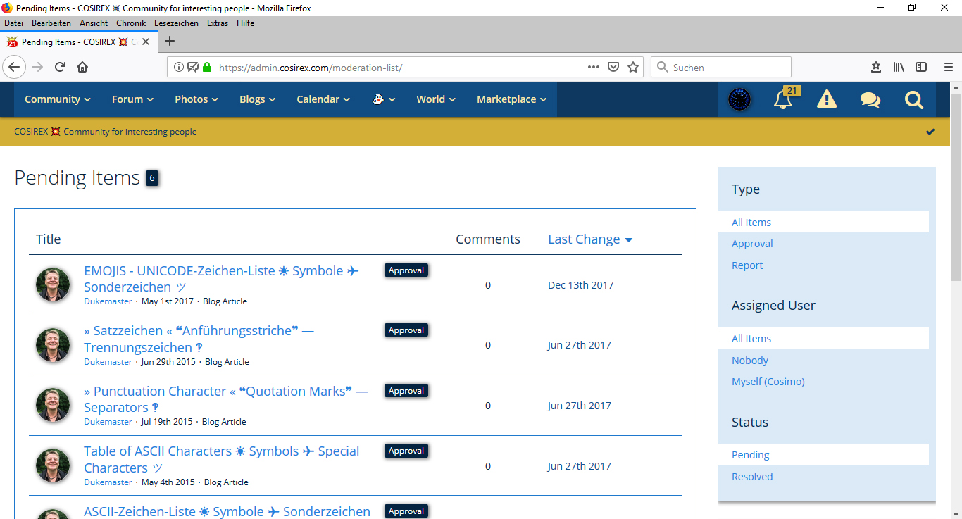 In the moderation panel, a preview of the reported content, as well as its author can be seen on the left side. Note: Author does not necessarily have to be a registered / registered member, because today it is even possible for guests to write and much more. In this case, guest123456 would be visible instead of the user in the example shown.